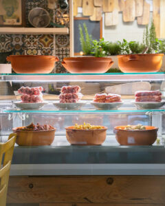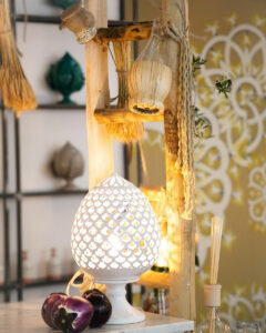 L’ambiente è caldo e accogliente, ispirato alle tradizionali masserie pugliesi, con un tocco di modernità e grande stile, arricchito da ceramiche fatte a mano dai ceramisti pugliesi.